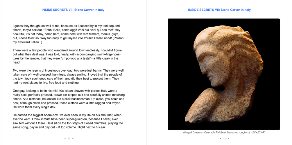 I invite you to get Inside Secrets, Volume VII, Stone Carver in Italy, now. I hope you enjoy it.